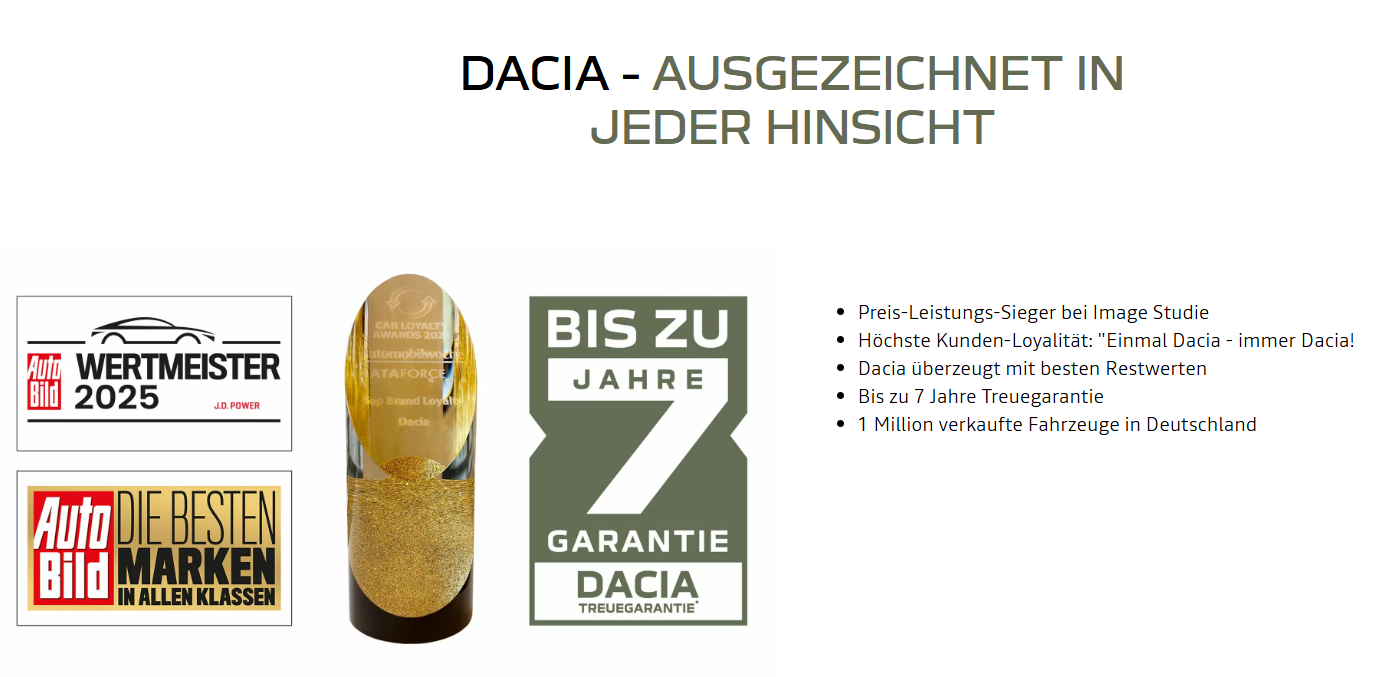 Entdecken Sie die aktuelle Produktpalette von DACIA, die darauf ausgerichtet ist, Ihren Alltag mit Stil, Komfort und fortschrittlicher Technologie zu bereichern. Bei Dacia steht die Erfüllung Ihrer Mobilitätsansprüche im Mittelpunkt.