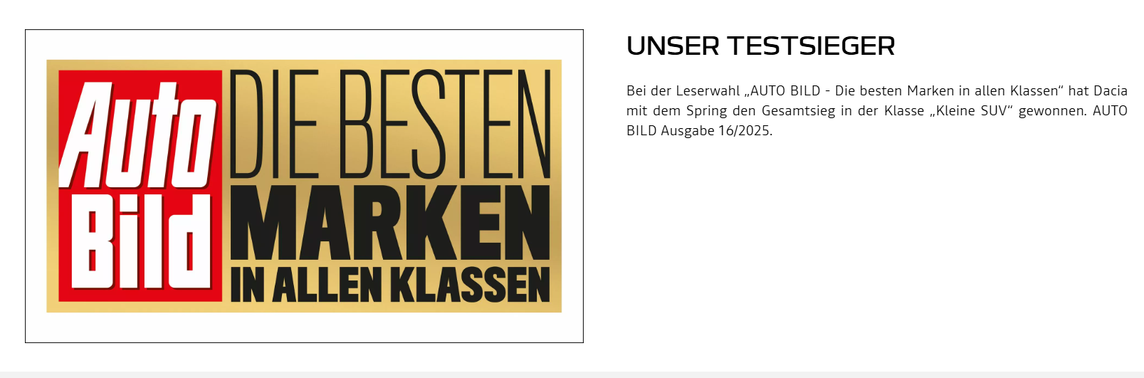 Dacia Spring electric 45: Stromverbrauch kombiniert (kWh/100 km): 14,1; CO2-Emission kombiniert (g/km): 0; CO2-Klasse: A.