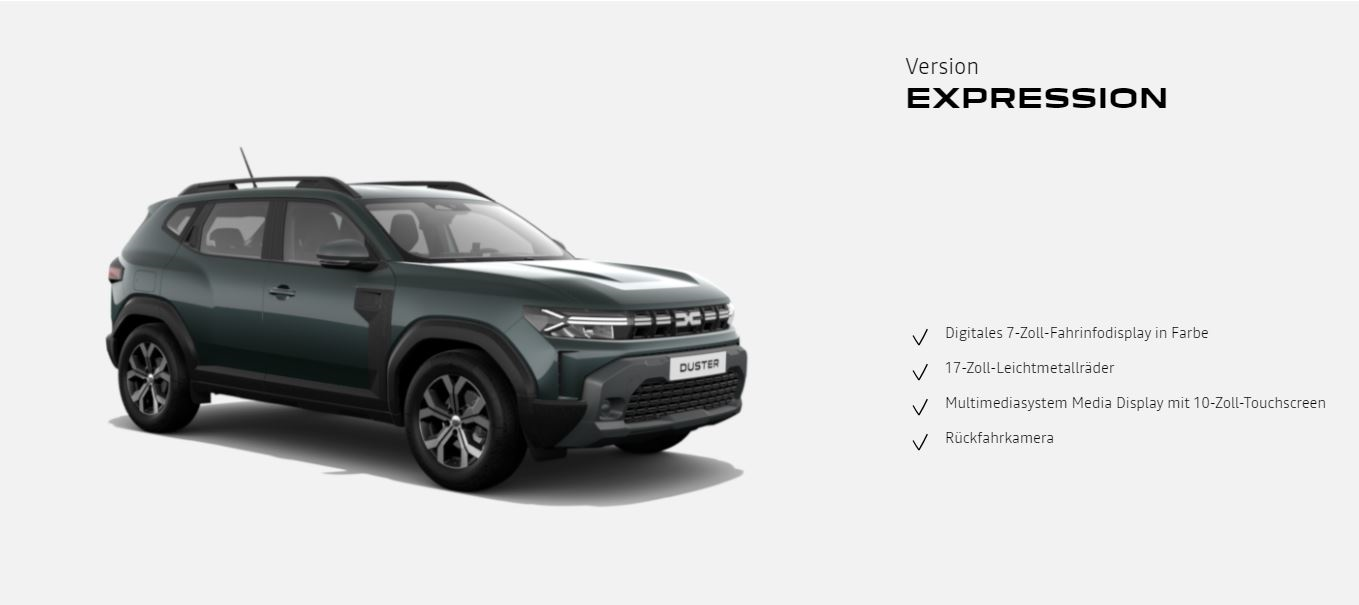 Neuer Dacia Duster TCe 130 4×4: Gesamtverbrauch kombiniert (l/100 km): 6,1; CO2-Emission kombiniert (g/km): 137; CO2-Klasse: E.