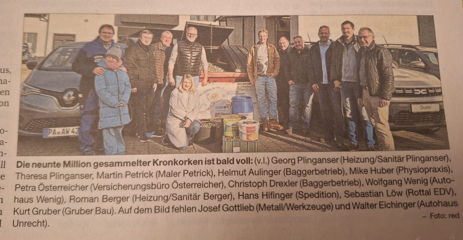 Ein besonderer Meilenstein wurde vor wenigen Tagen erreicht: Die Sammelaktion „Kronkorken für Kinder“ hat die beeindruckende Marke von 6 Millionen Kronkorken überschritten. Die Initiative, die 2022 von engagierten Unternehmern aus dem Pockinger Umland ins Leben gerufen wurde, erfreut sich in der Bevölkerung zunehmender Beliebtheit und trägt maßgeblich dazu bei, bedürftigen Kindern in unserer Region zu helfen: Dabei sammeln Bürgerinnen und Bürger, Vereine und Unternehmen Kronkorken, die in einem Container im Autohaus Wenig in Pocking oder bei den Sponsoren zur Entsorgung abgegeben werden können. Der Erlös aus der Entsorgung wird dann zusammen mit Sponsorenbeträge an die Kinderhilfe Holzland e.V. gespendet.