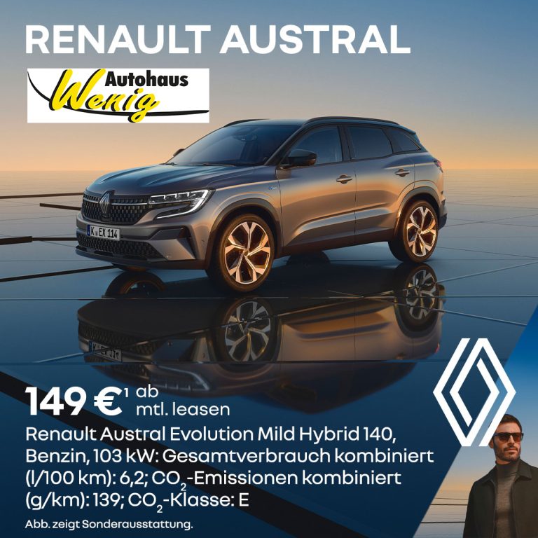 Sichern Sie sich jetzt den Renault Austral Evolution Mild Hybrid 140 schon ab 149 € 1 monatlicher