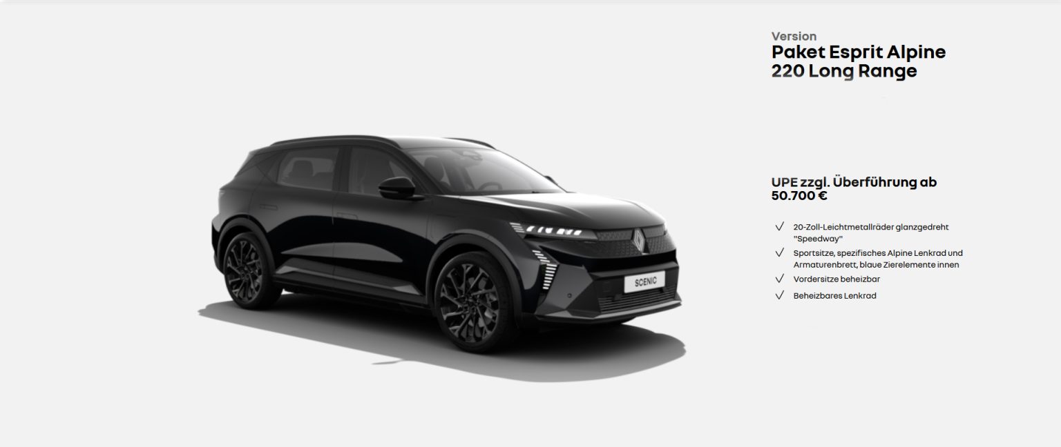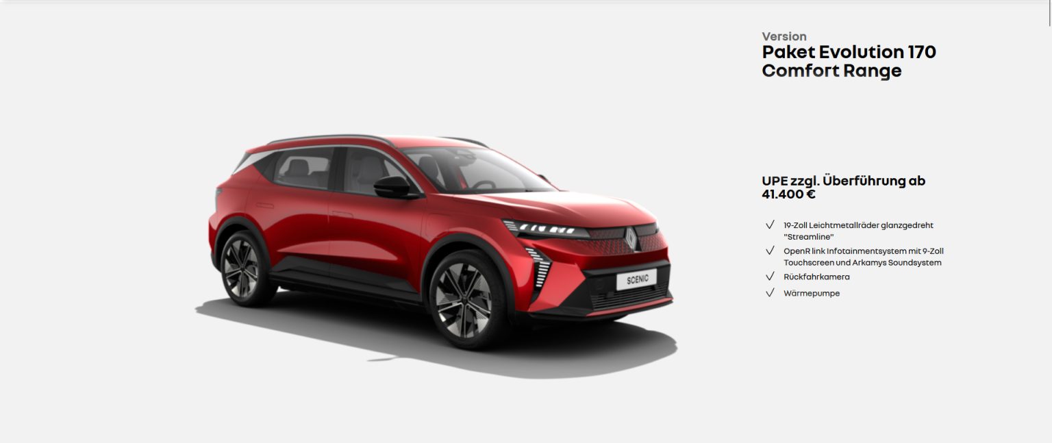 1 Leasing: Renault Scenic E-Tech 100% elektrisch Evolution 170 Comfort Range: Fahrzeugpreis: